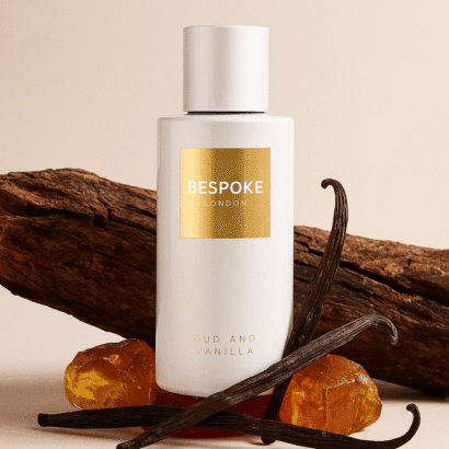 Make a bold and refined statement with Bespoke London Gold Collection Oud and Vanilla EDP, available at Elite Glow UAE.