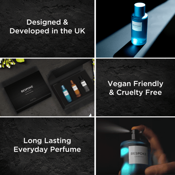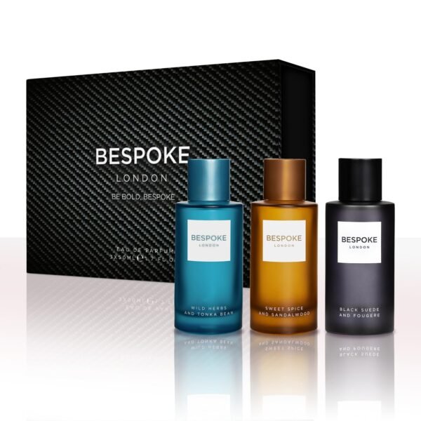 Bespoke London Coffret Gift Set features three luxurious 50ml Eau De Parfums—Sweet Spice & Sandalwood, Wild Herbs & Tonka Beans, and Black Suede & Fougere—each offering bold, long-lasting, and masculine fragrances. Expertly crafted for the modern man, these scents combine sophistication and confidence, making them perfect for any occasion, whether formal, casual, or on the go. Presented in a sleek, travel-friendly size, this set is the ideal gift for men who appreciate luxury and versatility. Cruelty-free and eco-friendly, Bespoke London delivers high-quality fragrances with a commitment to sustainability.