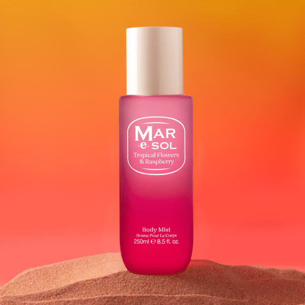 Enjoy sweet tropical freshness wherever you go with MAR.e.SOL Tropical Flowers Raspberry Body Mist, available at Elite Glow UAE.