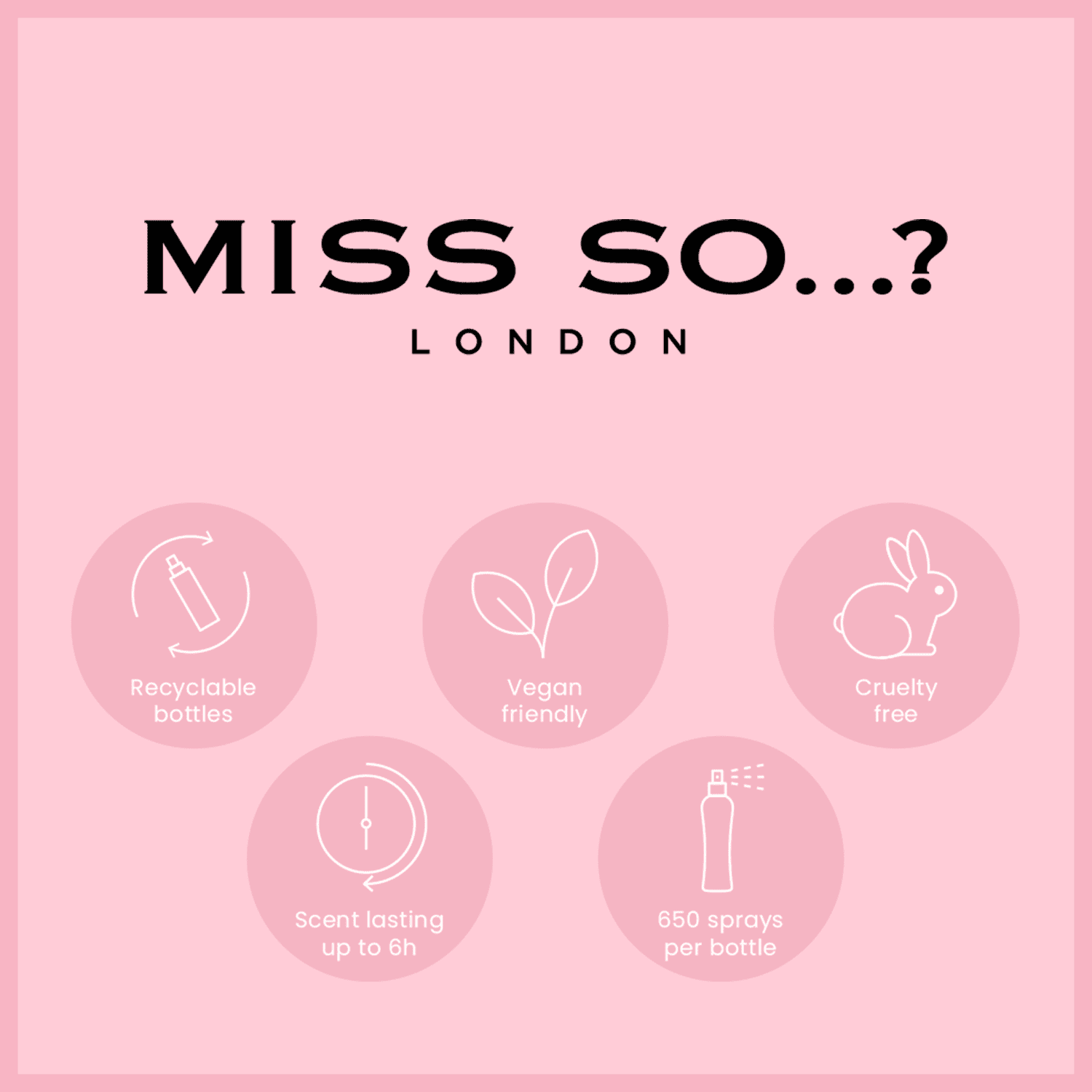 MISS SO…? Looking for an everyday signature scent? We’ve got you covered with our brand new Miss So…? Perfume Mists. Inspired by babes who seize every opportunity in life with fierce optimism and passion – they strive for success and glamour, they love and live by their own rules. They are… Miss So…?&HOW MANY SPRAYS? – Each 140ml So…? Sugar Rush Perfume Mist contains over 930 sprays, representing 62 days’ supply based on a 5 sprays 3 times a day. Scent should last for an estimated 6 hours after spraying.
